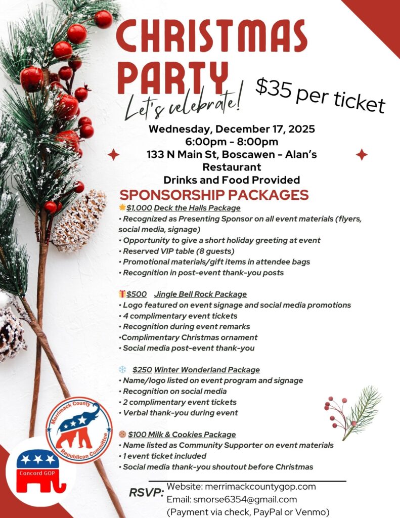 You’re Invited! Join the Merrimack County Republican Committee and Concord GOP for our Christmas Celebration! Purchase Tickets Here!